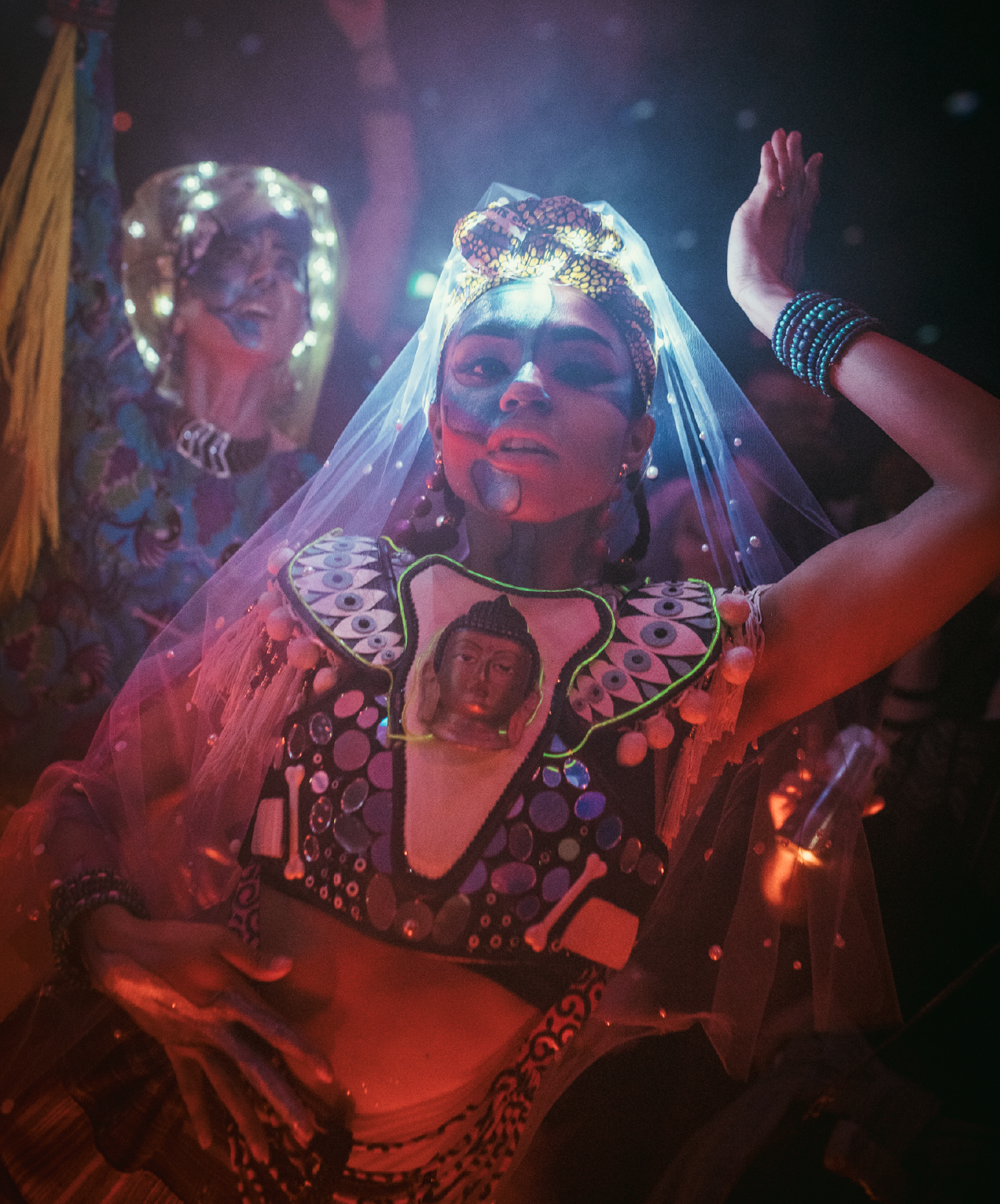 Sparkling and bohemian spirits, shimmering crystals, and sacred symbols from any and all traditions. A chance to dress yourself for cosmic travel, with a reverence for astrology and esoterics. Feathers and scales, totems and gems, the universe is yours to enjoy.